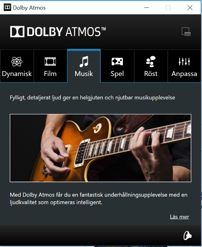 Det andra och sista programmet som förinstallerats är Dolby Atmos där vi kan välja mellan olika ljudprofiler eller anpassa vår egen ljudkurva för ljudet. Detta likt Matebook Manager är ett litet och smidigt program som inte stör användaren och drar ingen nämnvärd prestanda från datorn.
