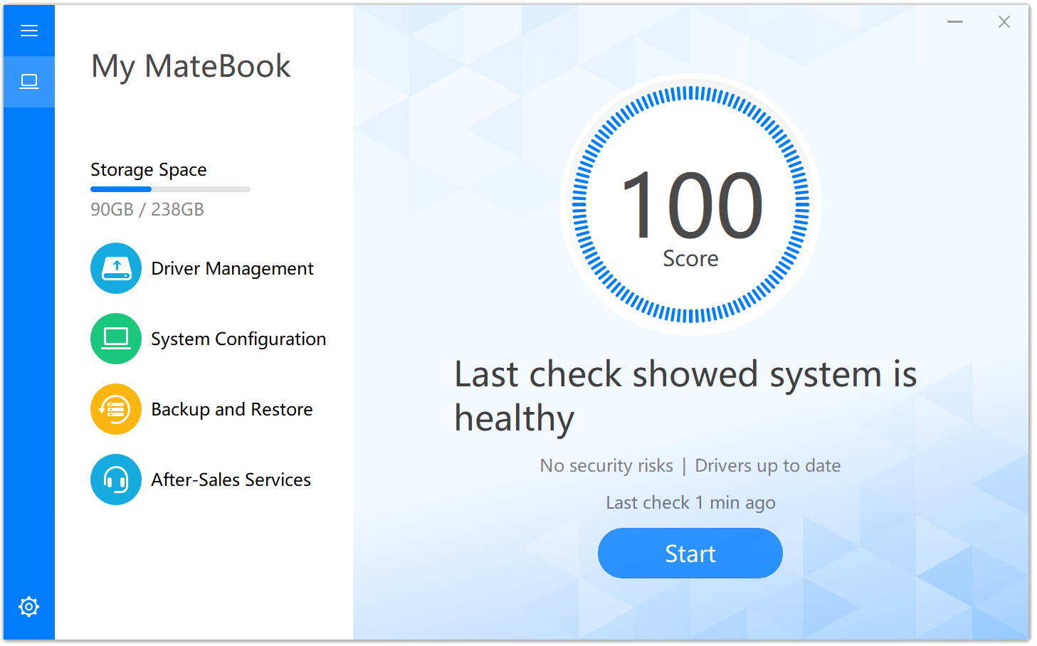 Det första programmet är Matebook Manager som fungerar som hubben för att hålla alla dina drivrutiner uppdaterade på datorn, säkerhetskopiera och ställa in fingeravtrycksläsaren.