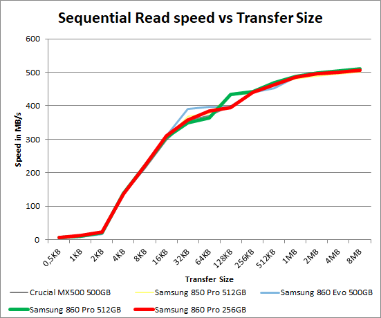 Alla de nya 860-enheterna presterar ungefär på samma sätt som gamla 850 Pro gjorde. Det beror primärt på att SATA-gränssnittet inte tillåter några större förbättringar än vad 850 Pro redan kunnat åstadkomma.