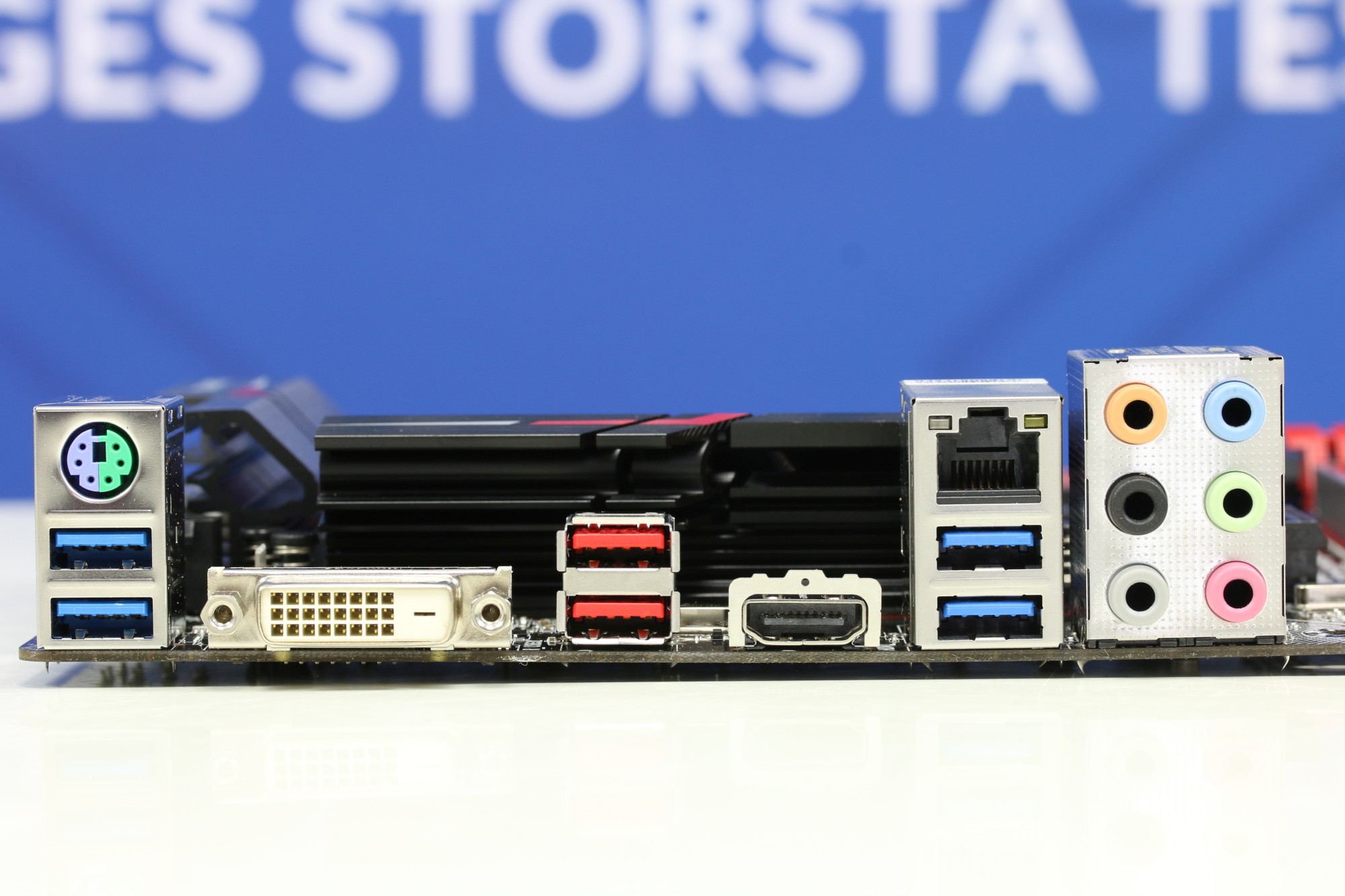 Allt som allt finns det fyra USB 3.0-portar, två längst till vänster (under en traditionell PS2-kontakt för möss och tangentbord) samt ytterligare två under nätverkskontakten. I mitten av IO-panelen finns två USB 3.1-portar, båda med traditionell USB-A-kontakt.