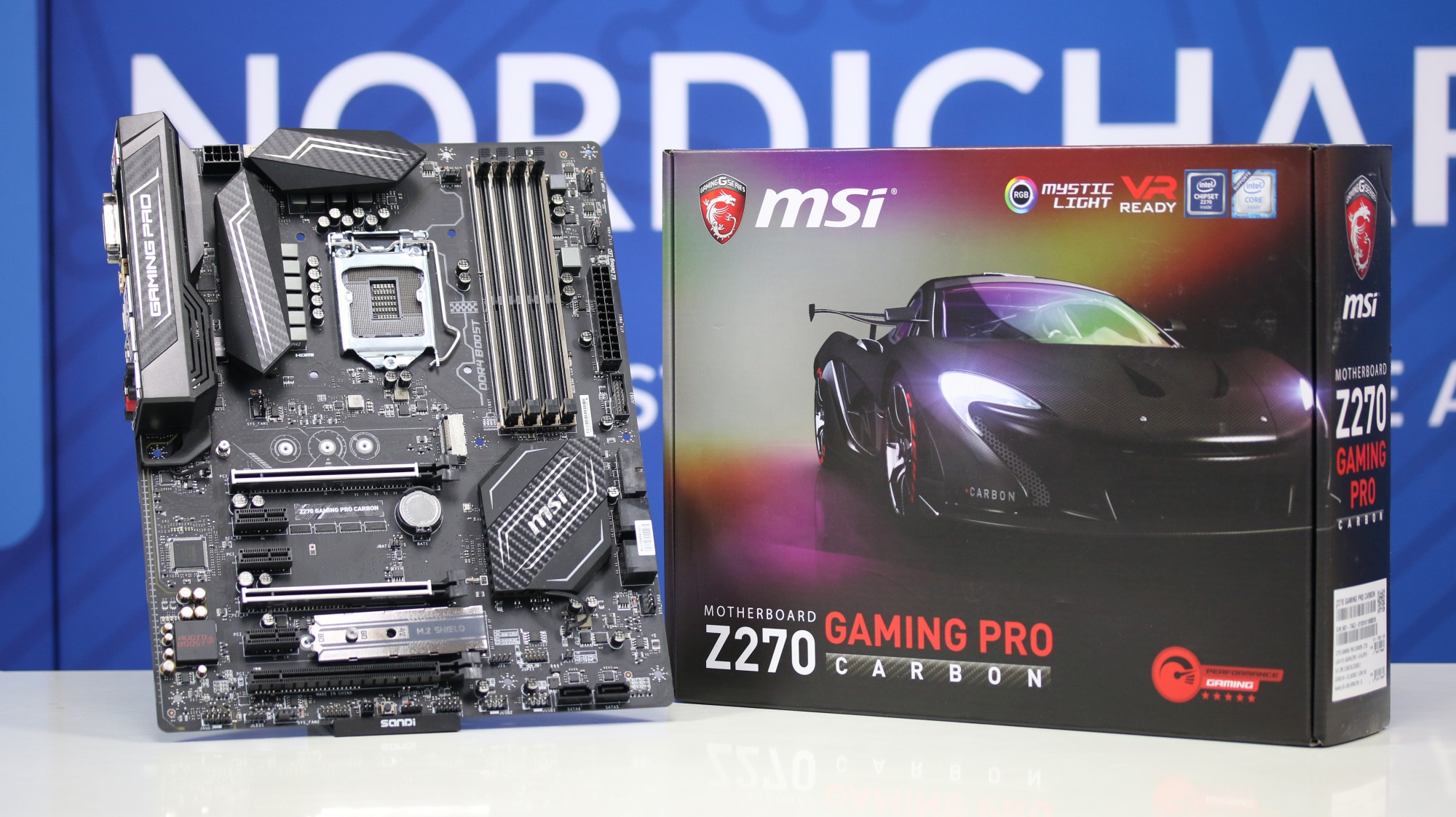 Det Z270-moderkort vi fått in från MSI är en direkt uppföljare till Z170-modellen Z170 Gaming Pro Carbon, och följer också samma namnschema. MSI Z270 Gaming Pro Carbon har samma designmantra som sin föregångare, med en övergripande svart design och detaljer som påminner om kolfiber. Z270-modellen har även fått ett uppdaterat, mer avancerat belysningssystem.