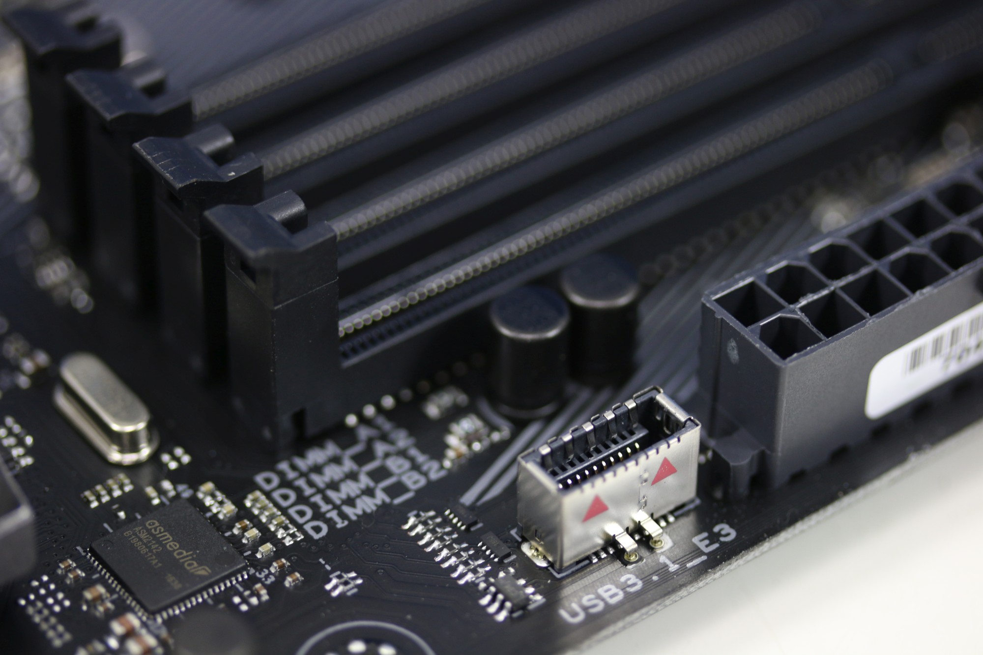 USB 3.1-stödet levereras via en tredjepartskontroller från Asmedia, precis som på föregångaren och på konkurrenternas kort. Av dessa kontakter använder en den traditionella Type-A-kontakten och den andra använder den vändbara Type-C-kontakten. Men det finns även en intern kontakt för USB 3.1 i frontpanelen på ett chassi. Det här är någonting som idag inte finns i någon större grad i faktiska chassin, men som innebär ett något mer framtidssäkert moderkort.