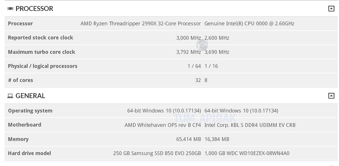 Inlägget i databasen mer eller mindre bekräftar produktnamnet Threadripper 2990X. Vi ser även att det mycket väl rör sig om 32 kärnor med 64 trådar, som tidigare bekräftat av AMD själva.