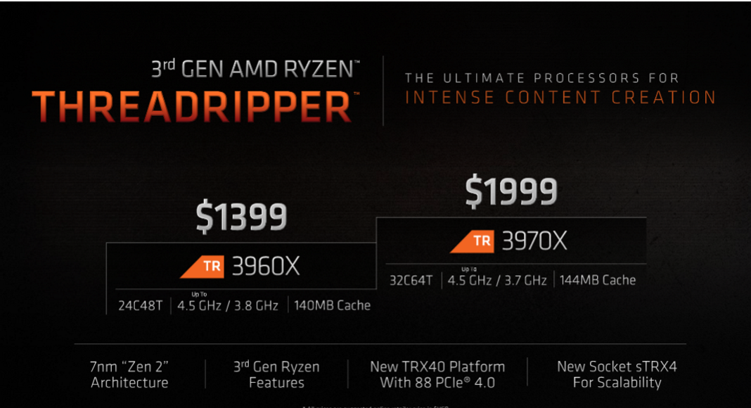 I och med att AMD:s Ryzen-processorer baserade på arkitekturen Zen 2 ökade det tillgängliga antalet processorkärnor ökas även antalet kärnor i HEDT-familjen Threadripper. Nu har AMD officiellt avtäckt de två processormodellerna Threadripper 3960X och Threadripper 3970X med 24 respektive 32 kärnor.