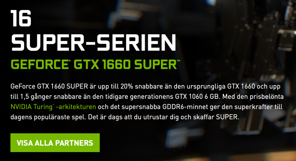 Nvidia GTX 1660 Super är en uppdaterad modell av GTX 1660. På pappret verkar inte uppdateringen vara särskilt stor. Den enda betydande nyheten är en uppgradering från GDDR5- till GDDR6-minne. Den uttalade tanken med GTX 1660 Super är i alla fall att ge konsumenter den sista lilla prestanda som krävs för mer krävande spel i Full HD-upplösning. Oberoende på hur bra och prisvärt det nya kortet är i sig självt eller i jämförelse med AMDs motsvarande kort, har marknadsföringen av 1660 Super redan blivit förvirrande. Problemet är att Nvidia inte verkar ha koll på skillnaden mellan faktiska prestandasiffror och på förbättringar i prestanda. Det har gjort att ett felaktigt påstående om att 1660 Super skulle vara ”1,5 gånger snabbare” än 1060 har publicerats brett av både Nvidia och av journalister.