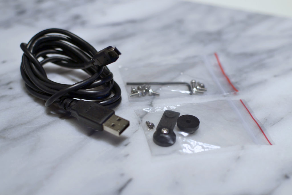 Vid köp av Vortex Pok3r LE så får vi med en anslutningskabel, skruvar, insexnyckel samt 6 stycken gummifötter. Ett par av de medföljande gummifötterna är specifikt för den bakre delen av tangentbordet, om vi skulle önska få lutningen mer brant.