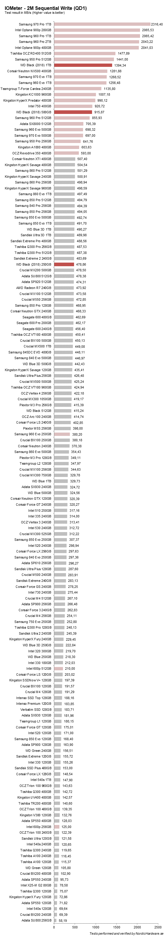 Med lägre QD ser vi tyvärr att trenden håller i sig en aning. WD Black är snabbare än alla SATA enheter och även betydligt än förra årets Black. Men jämfört med enheterna från Samsung så ligger man fortfarande lite efter.