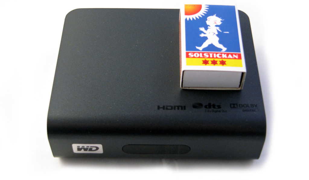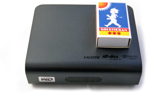 WD TV Live HD är extremt liten, vilket vi tydligt ser i det klassiska tändsticksask-testet.