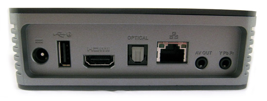 WD TV Live är en stilren liten mediespelare med in- och utgångar främst på baksidan. Där finns en USB-port, HDMI-port, Toslink ljudport, ethernet-port samt komposit in- och utgång. Det finns dessutom en andra USB-port på ena sidan.