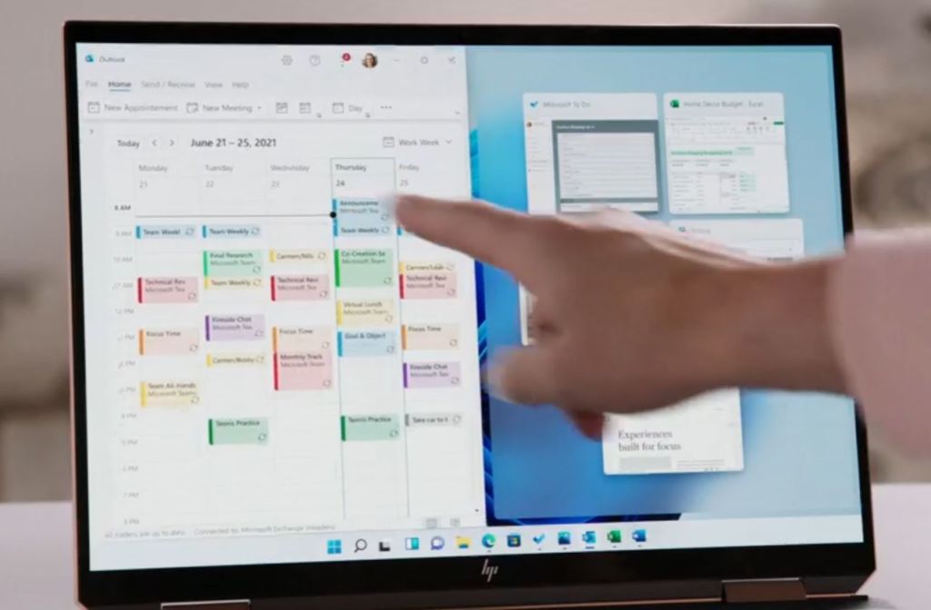 Microsoft introducerar även Snap Layout. Denna funktion låter användare snabbt fästa applikationer och fönster på specifika delar av sin bildskärm. Operativsystemet kan även spara grupper av Snap-grupper där Windows 11 kommer ihåg specifika fönster och applikationer samt vart på skärmen de har fästs. Något Microsoft hoppas ska leda till bättre effektivitet i jobblivet.
