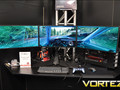 With a powerful Radeon HD 6990 graphics card and three 24″ panels it allowed visitors to try some DiRT 2 and revealed that the stand support alterations of height, angle and rotation of the screens. At the same time you get two USB 2.0 ports and headphone output.