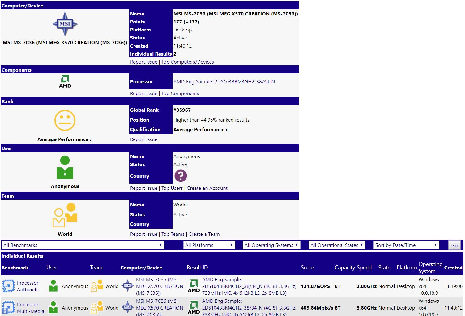 En fyrkärnig Zen 2-CPU från AMD med en klockfrekvens på upp till 3,8 gigahertz har nu listats i en databas tillsammans med ett MSI MEG X570 Creation-moderkort.